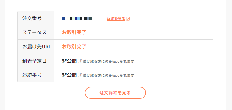 ※配送状況確認用ページには個人情報が記載されております。URLの管理にお気を付けください。